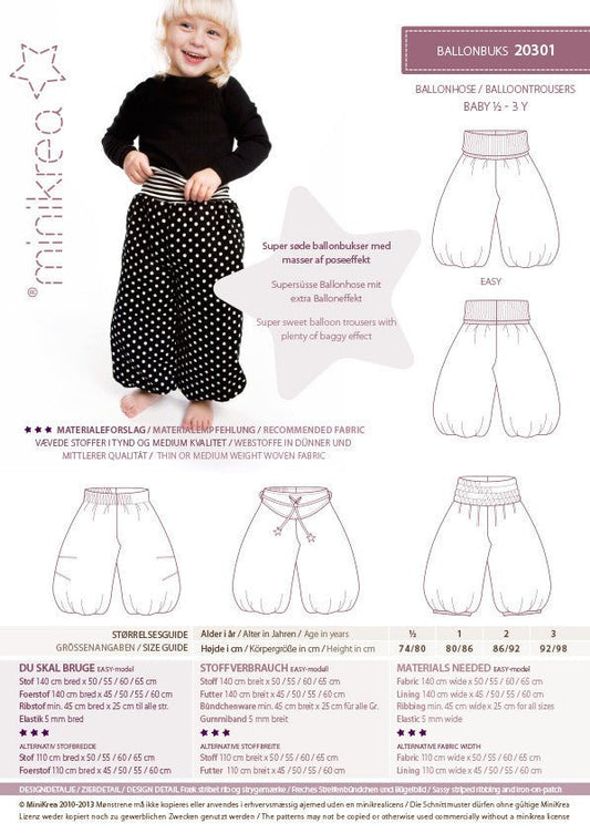 Balloon Pants - Minikrea - Pattern - 6mo-3yrs