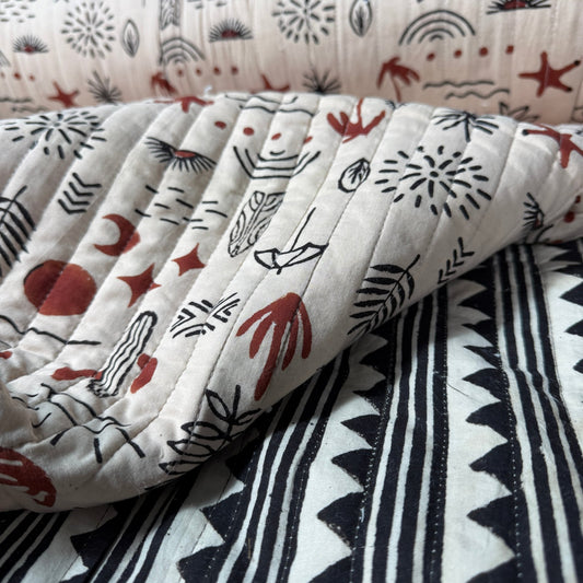 Clayfield Vines + Kora Rhythm - Quilted Bagru Indian Cotton Block Print (Reversible)