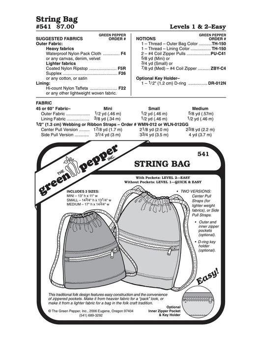 String Bag Pattern - 541 - The Green Pepper Patterns