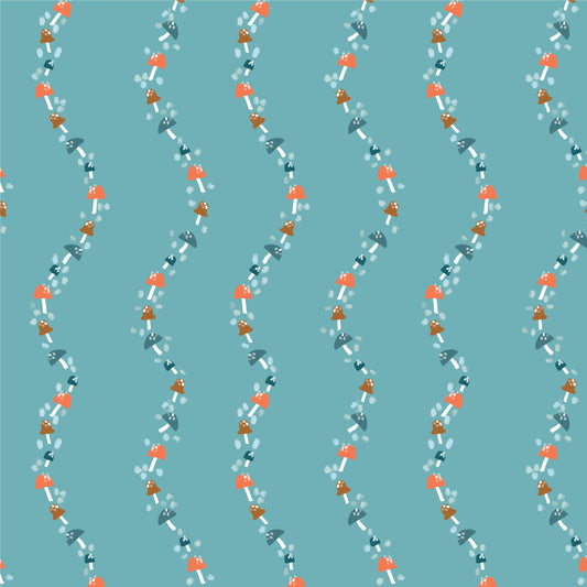 Mushroom Vines - Blue - Woodland Creatures - Dominika Godette - Cloud 9 Fabrics - Poplin
