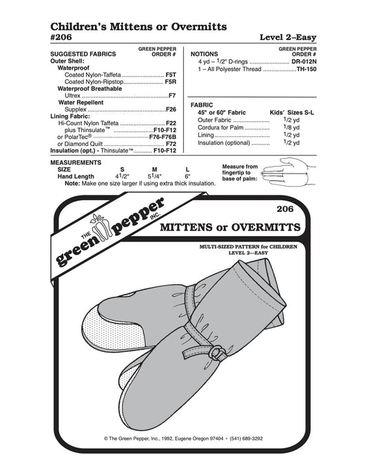 Kid’s Overmitts or Insulated Mittens Pattern - 206 - The Green Pepper Patterns