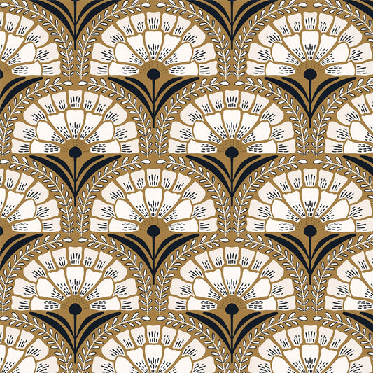 Flowers Cotton-Linen Canvas - Japanese Import - Grey/Gold/Natural