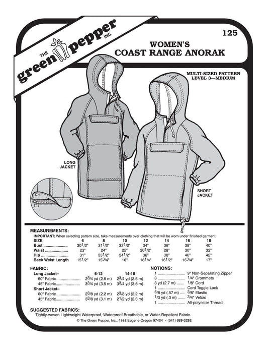 Women’s Coast Range Anorak Pattern - 125 - The Green Pepper Patterns