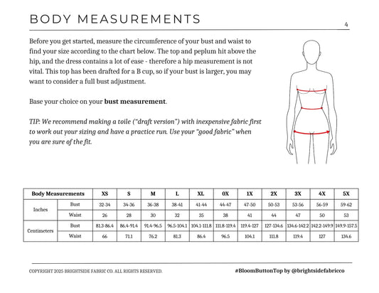 Bloom Button Top and Dress Sewing PDF Pattern - Brightside Fabric Co.