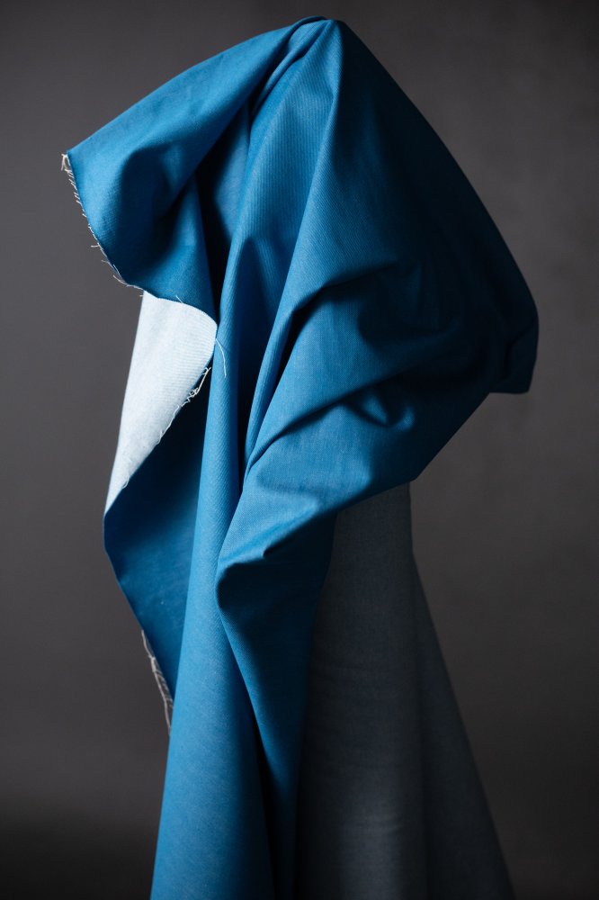 A really unusual, coloured denim in a bright sky blue, an ideal weight for jeans and jackets. We would make a pair of Junos or an Ottoline.