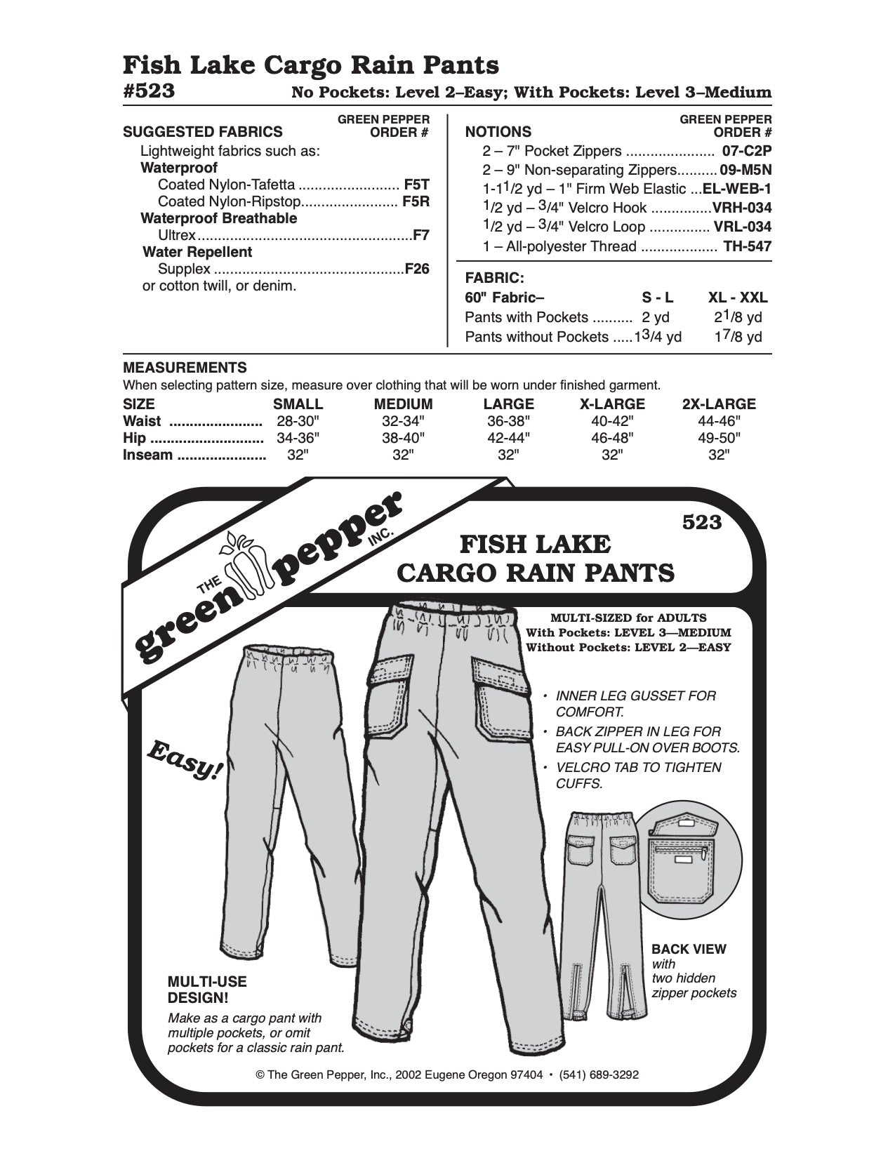 Adult’s Fish Lake Cargo Rain Pants Pattern - 523 - The Green Pepper Patterns