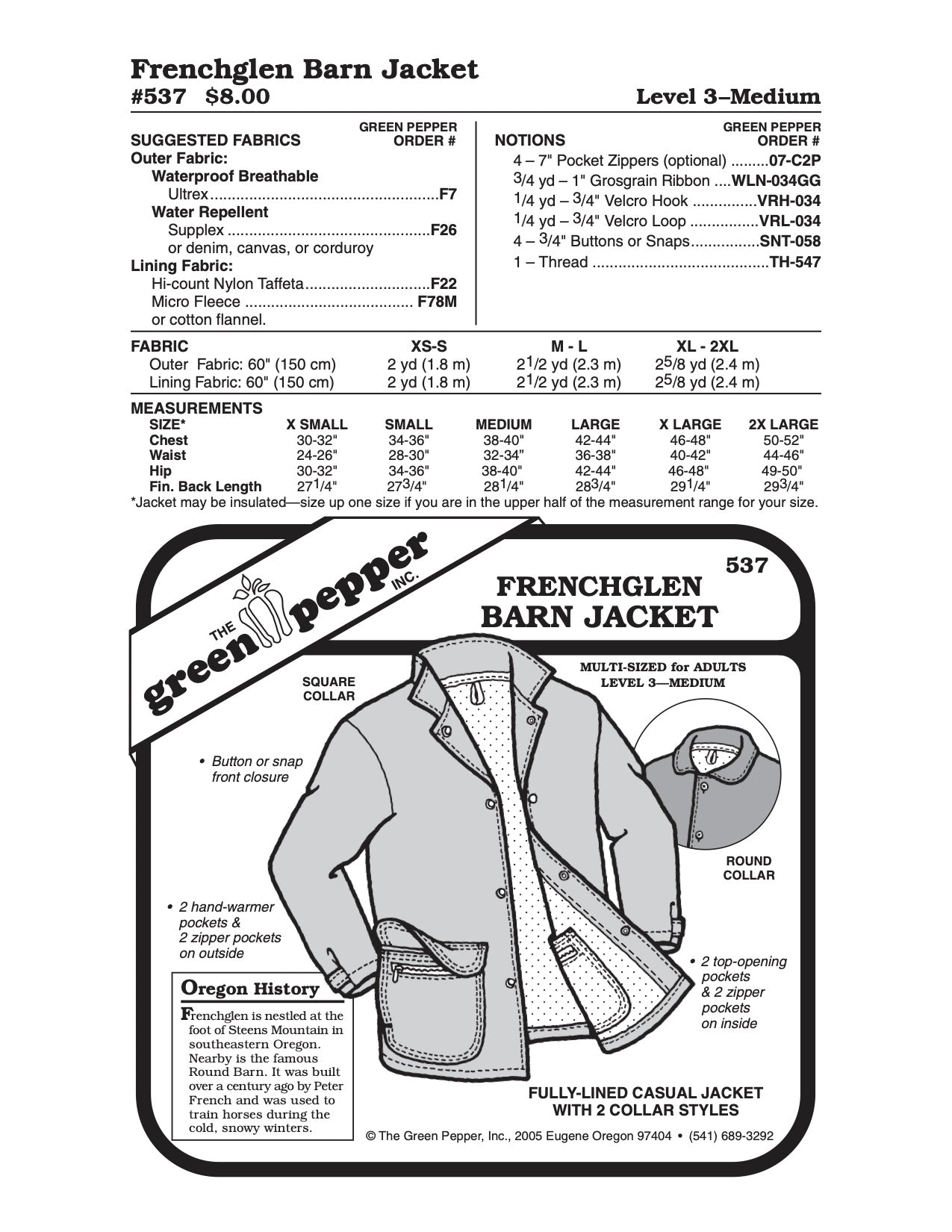 Adult’s Frenchglen Barn Jacket PDF Pattern - 537 - The Green Pepper PatternsTGP-537-PDF