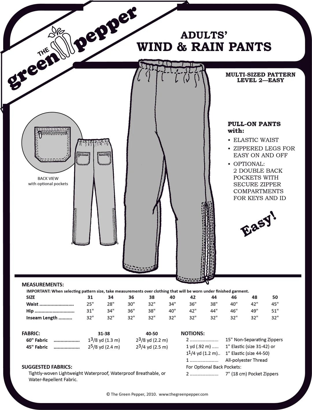 Adult Wind & Rain Pants PDF Pattern - 128 - The Green Pepper Patterns