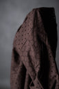 A dark aubergine broderie anglaise with a repeating design every 14cm. Broderie anglaise is a whitework needlework technique incorporating features of embroidery, cutwork and needle lace.
