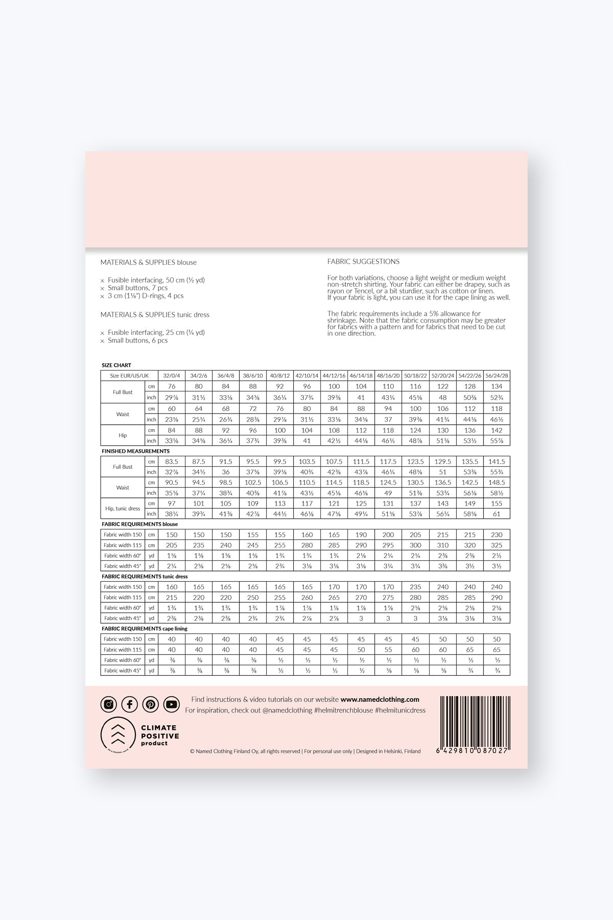 Helmi Trench Blouse & Tunic dress - PDF Pattern - Named Clothing - Simplifi Fabric