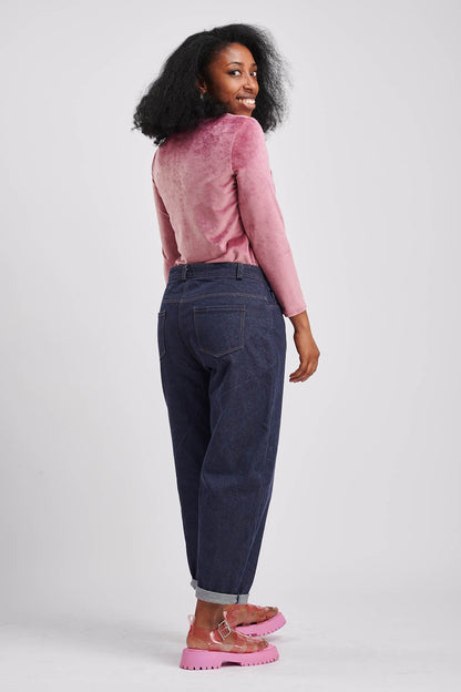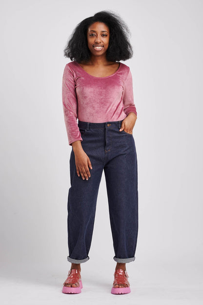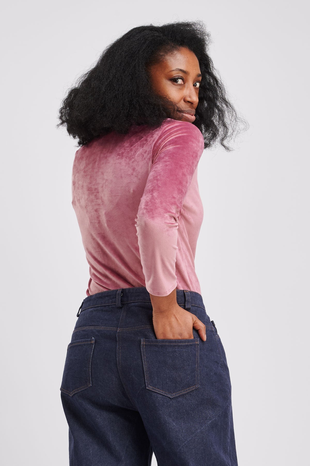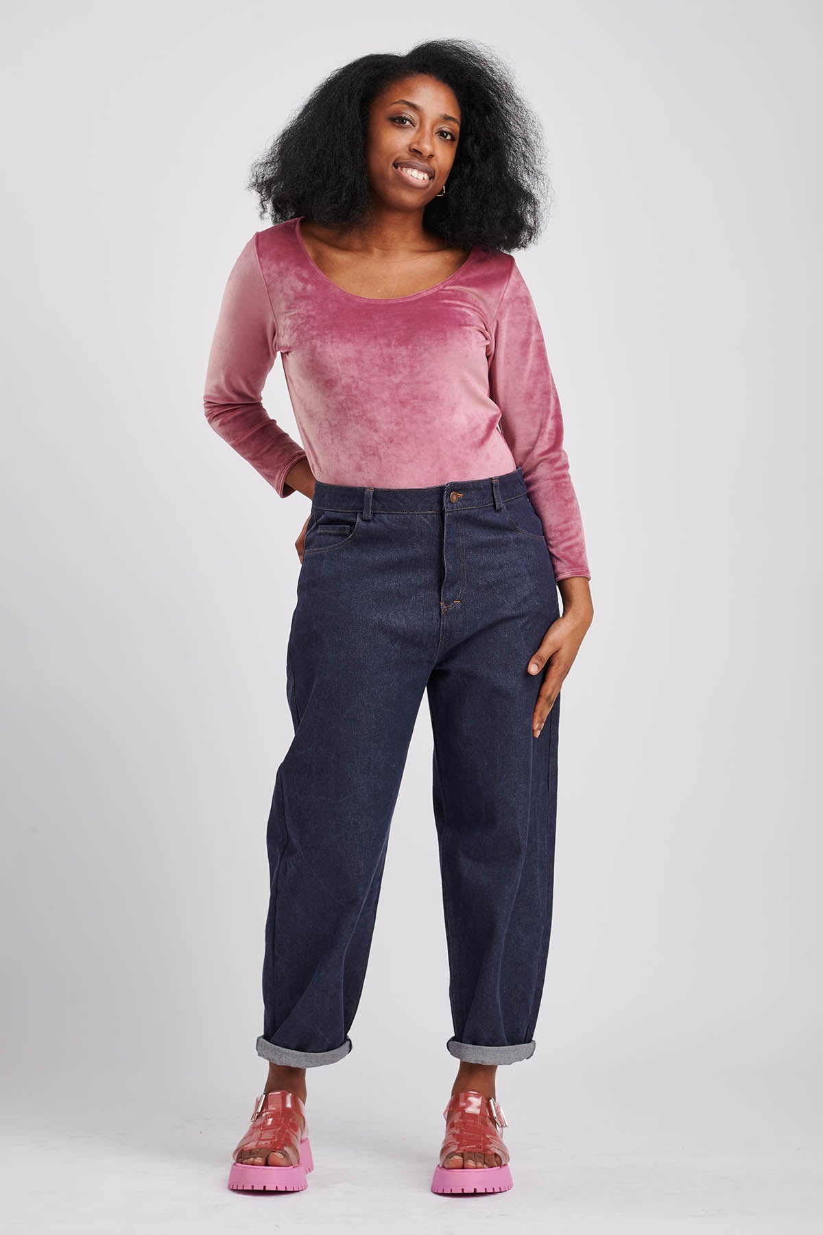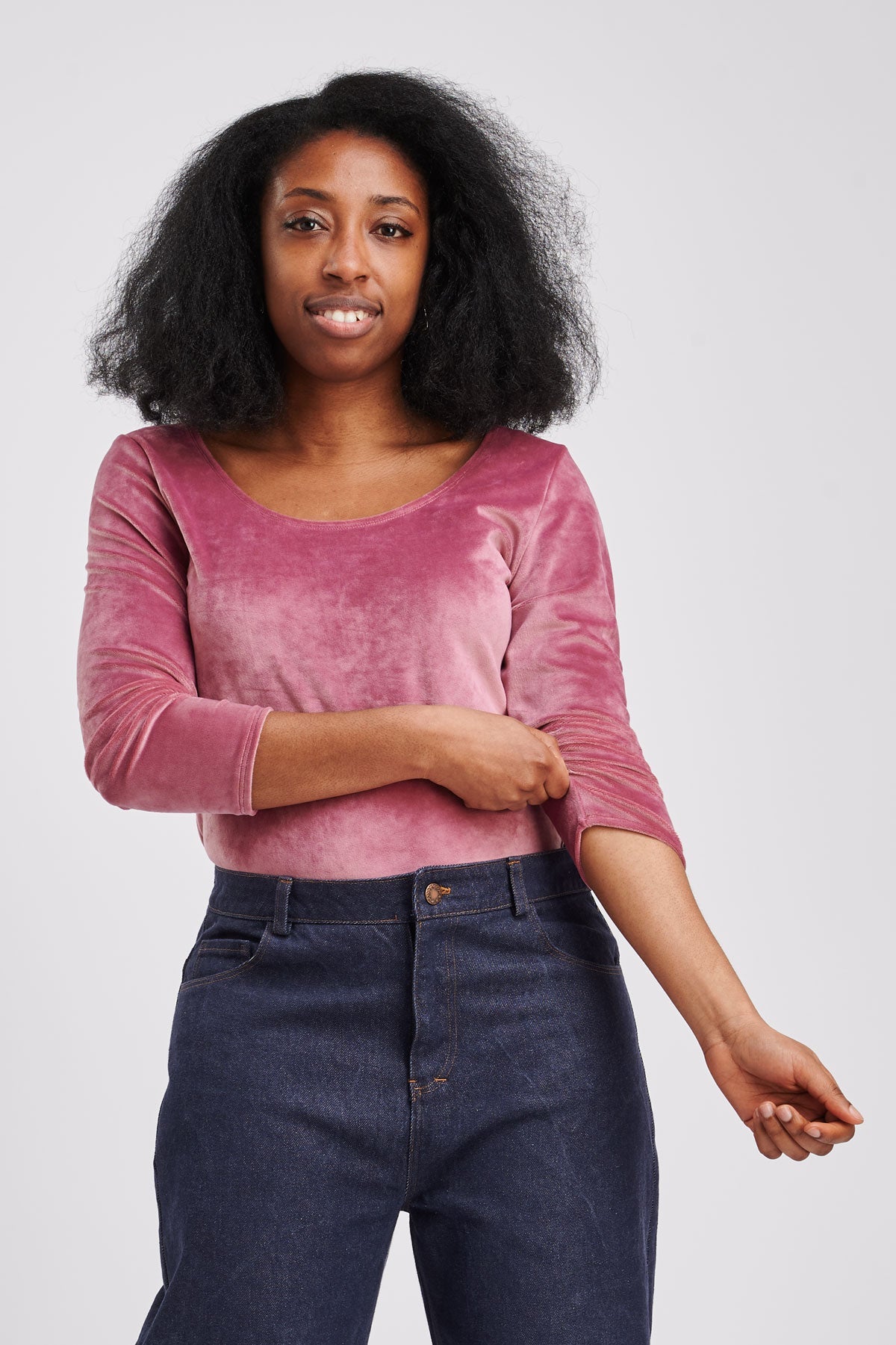 The pink bodysuit was sewn in a velvet jersey from Ma Petite Mercerie.
