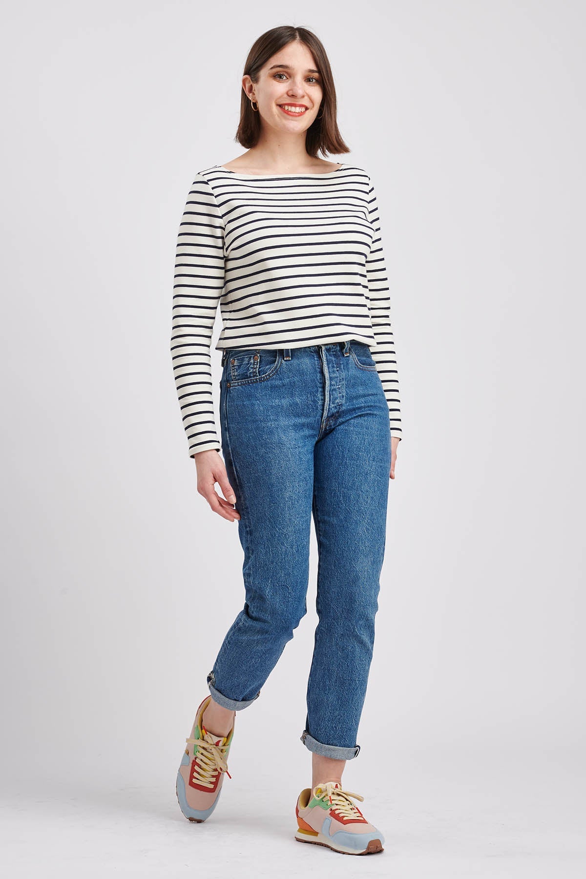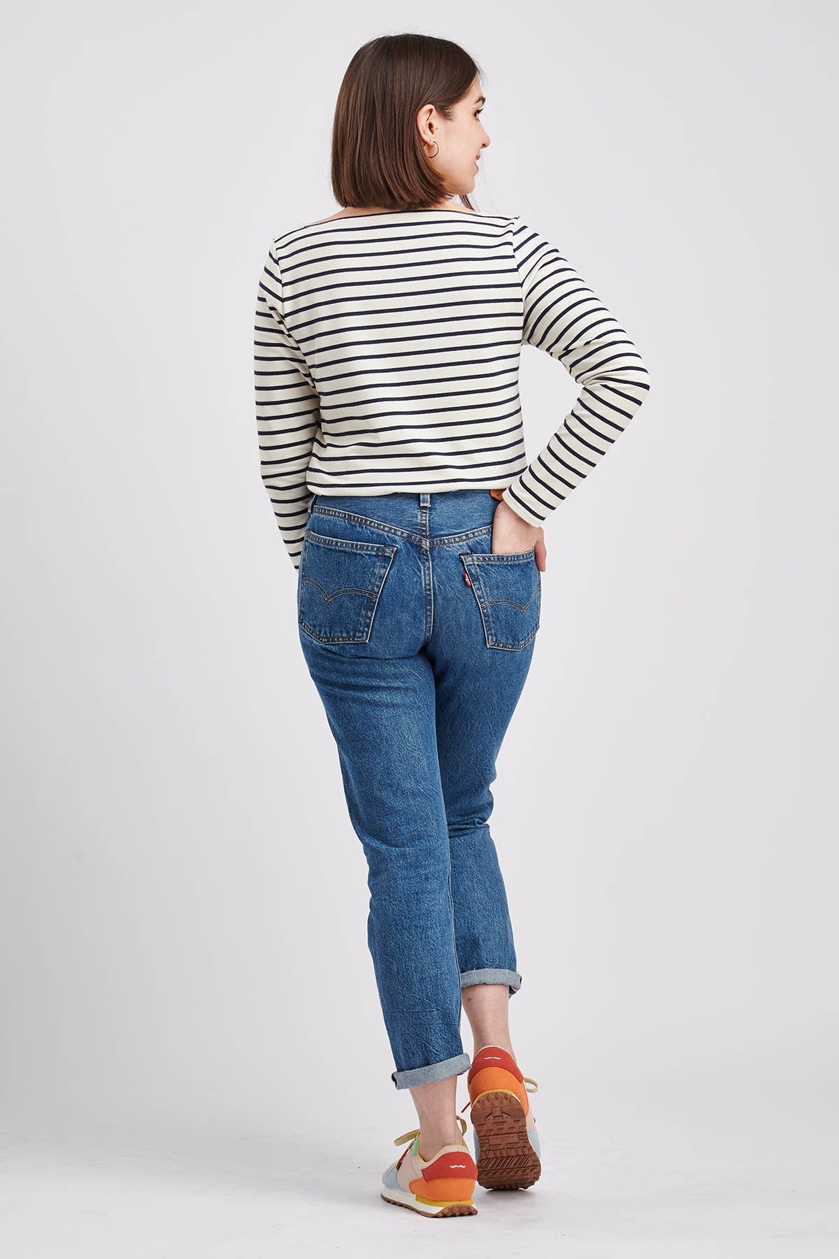 The stripy bodysuit was sewn in a French terry from Ma Petite Mercerie.