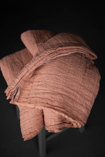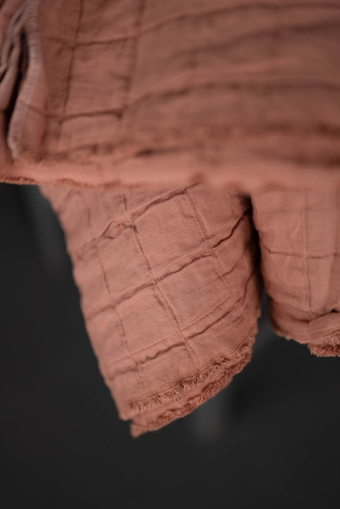 Plaster pink – for reference this is darker than our Dauphine pink. This layered cotton has a jacquard weave that gives it a quilted look and feel.
