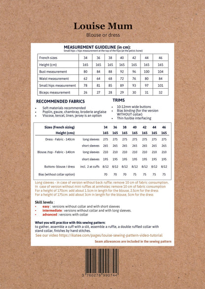 Louise Mum Blouse & Dress Sewing Pattern - Ladies 34/46 - IkateeIKATEE-Louise-Mum