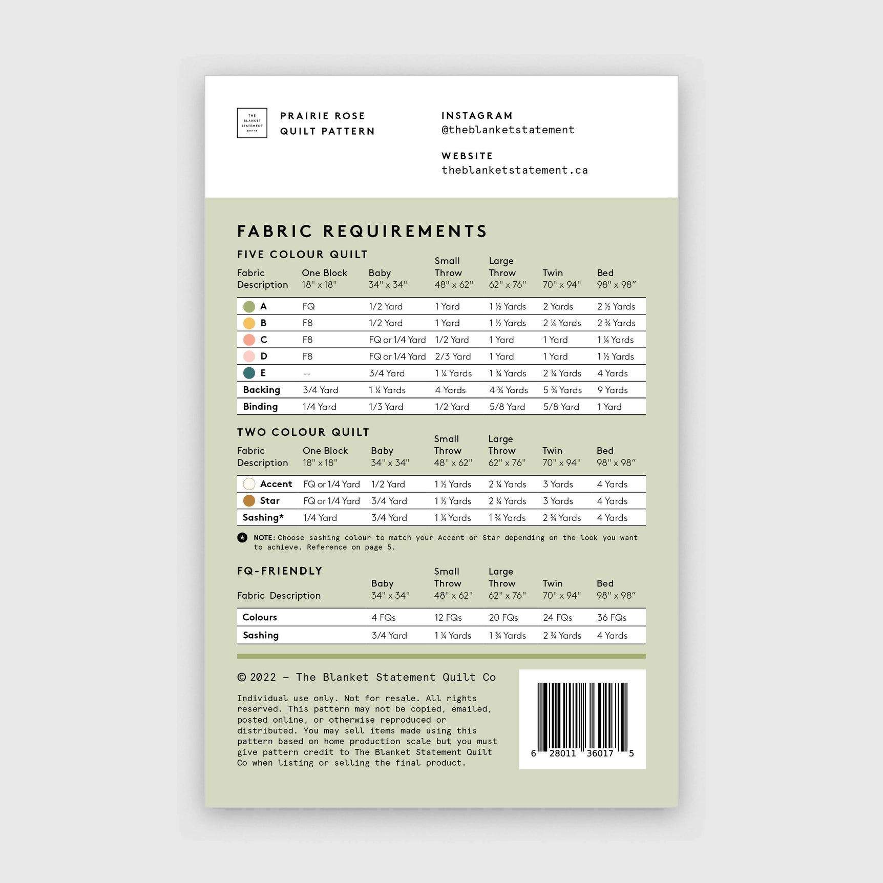 Prairie Rose Paper Pattern - The Blanket Statement Quilt Co. - Simplifi Fabric