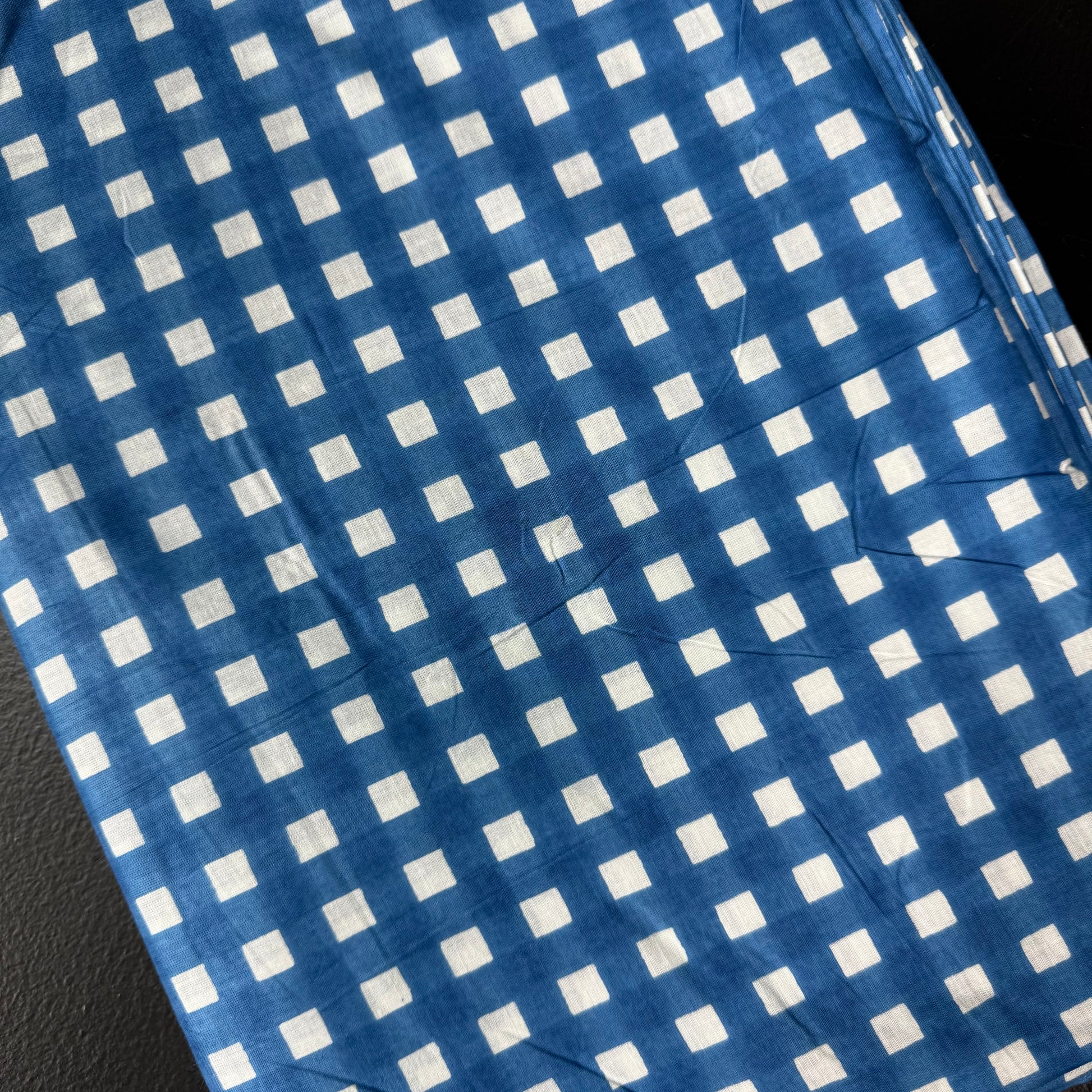Retro Gingham Picnic Blue - Bagru Indian Cotton Screen Print