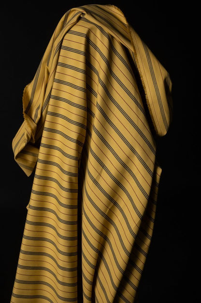 A high quality organic cotton ticking, overdyed in a butter yellow.