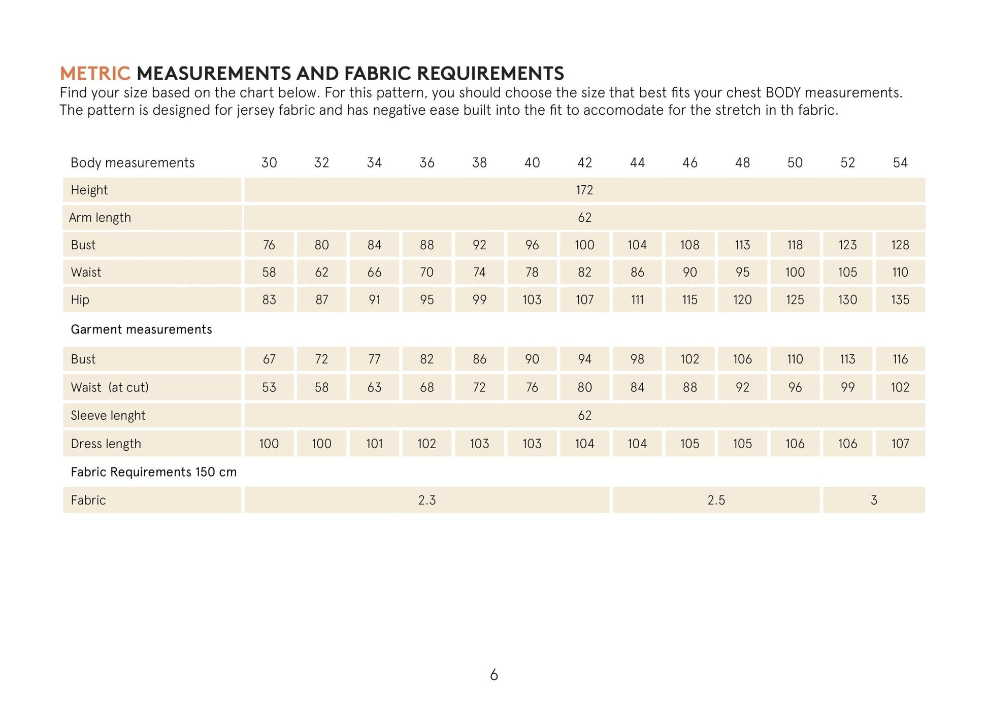 When selecting fabric, we recommend lightweight jersey fabric with a stretch of 3-5% Elasthane for the best results. Suitable fabrics include Viscose, cotton, ITY, or any jersey that drapes beautifully to create flowing movement in your dress.