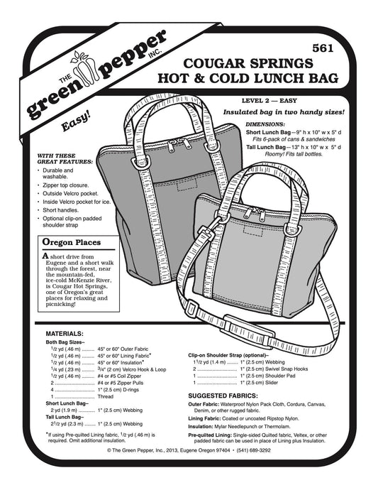 Cougar Springs Hot & Cold Lunch Bag Pattern - 561 - The Green Pepper Patterns
