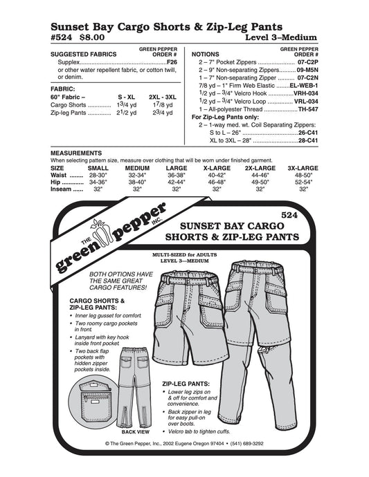 Adult’s Sunset Bay Cargo Shorts & Zip Leg Pants Pattern - 524 - The Green Pepper Patterns