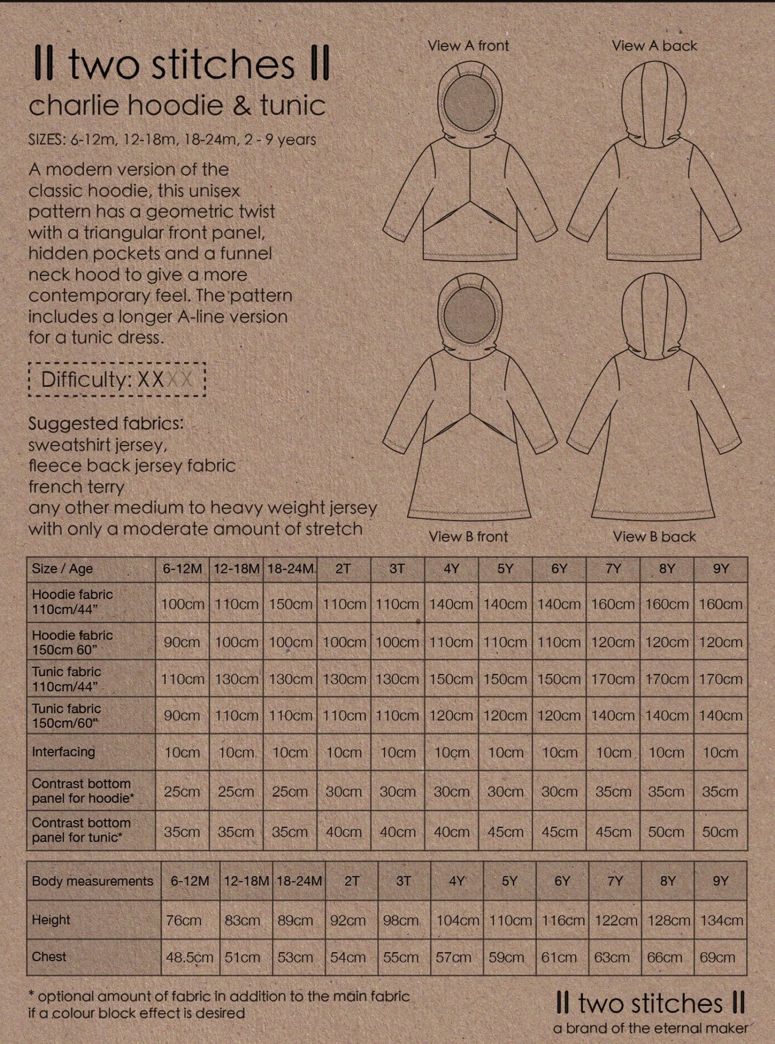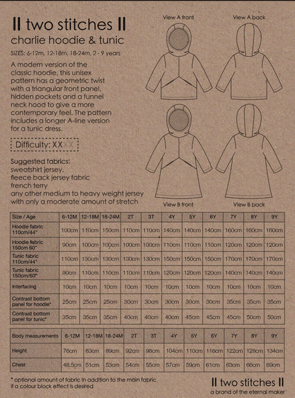 Charlie Hoodie & Tunic - Kids Paper Sewing Pattern - Two Stitches Patterns