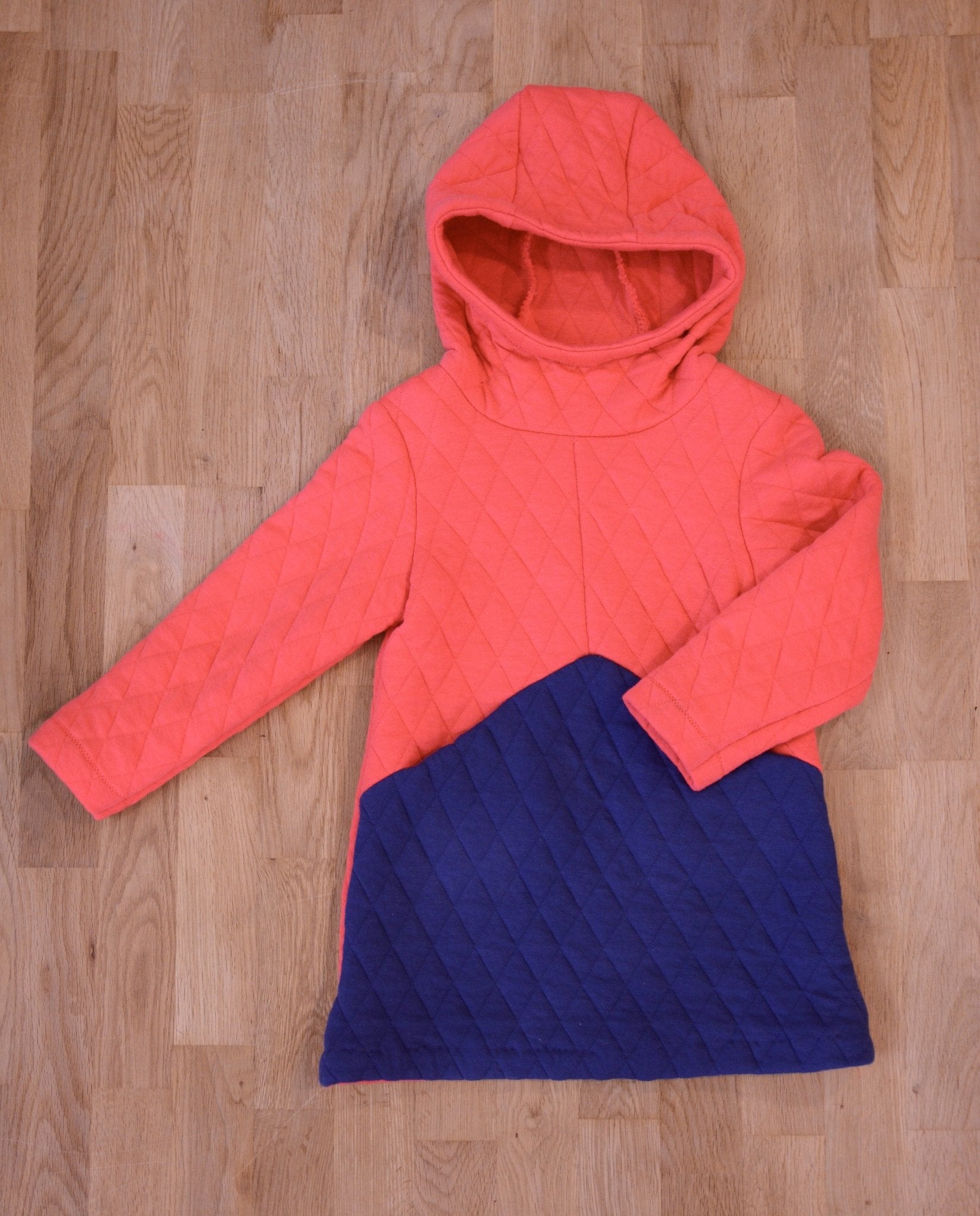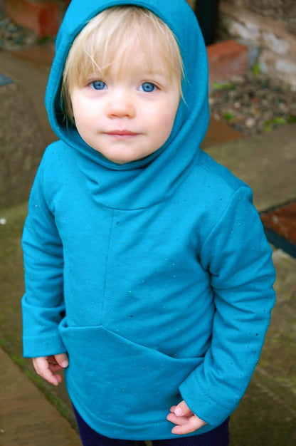 A modern version of the classic hoodie, this unisex pattern has a geometric twist with a triangular front panel, hidden pockets and a funnel neck hood to give a more contemporary feel. The pattern includes a longer A-line version for a tunic dress.