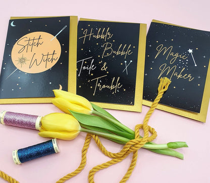 "HUBBLE, BUBBLE, TOILE and TROUBLE" Sewing Themed Greeting Card - Sew Anonymous