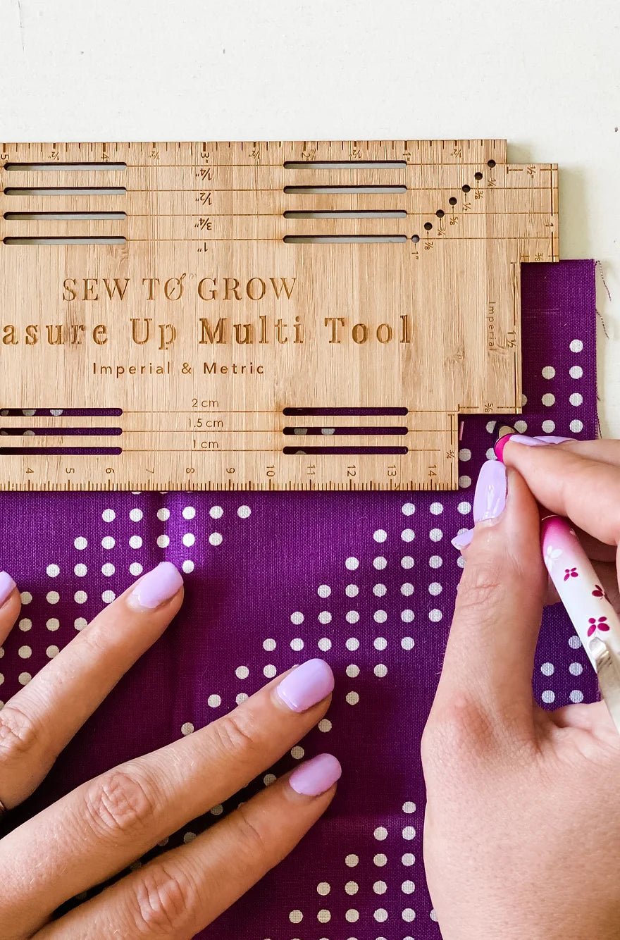 Our latest original design from Sew To Grow, The Measure Up Multi-Tool, is a must have in your sewing room! It is made in Australia from premium bamboo and has both imperial and metric measurements, making it easy for you to convert and figure out distances.