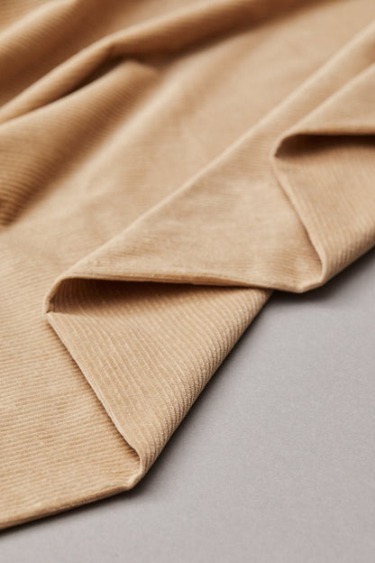 Soft corduroy with a classic 8 wale ribbed texture, and a velvety soft touch and a medium weight relaxed drape.