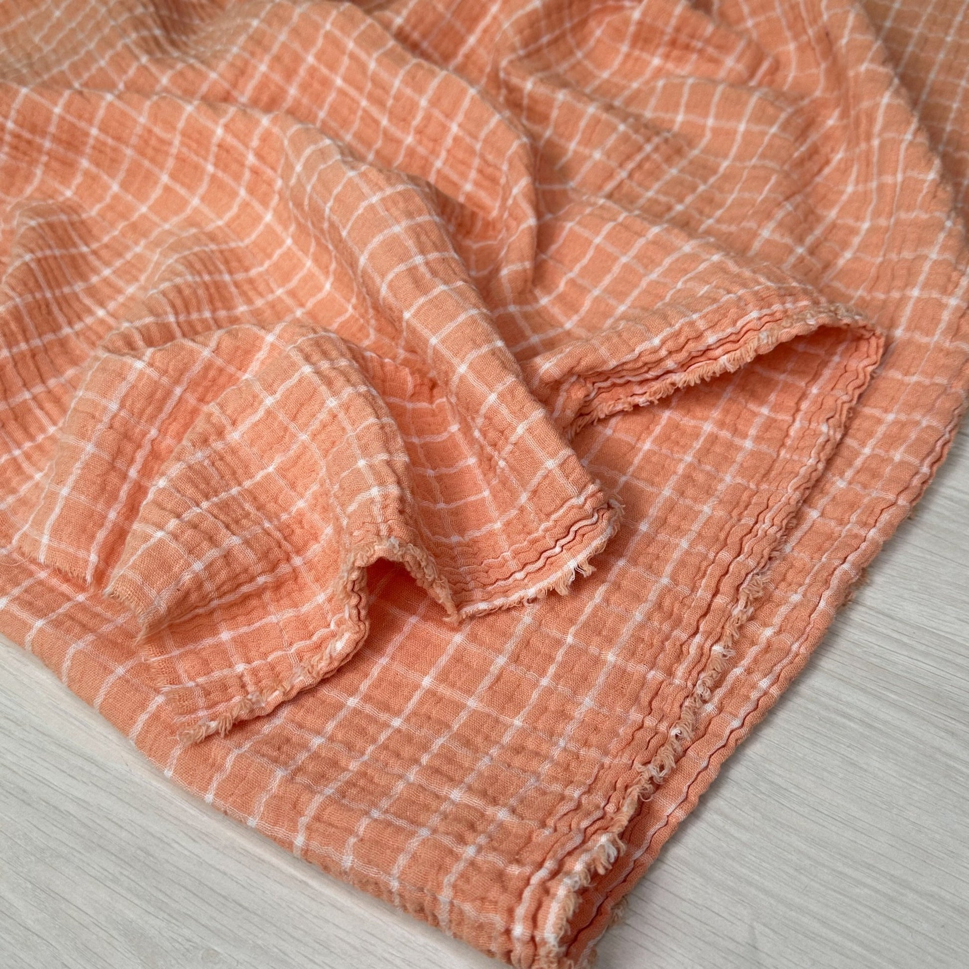Organic Cotton Yarn Dyed Double Gauze - Check - Apricot/White