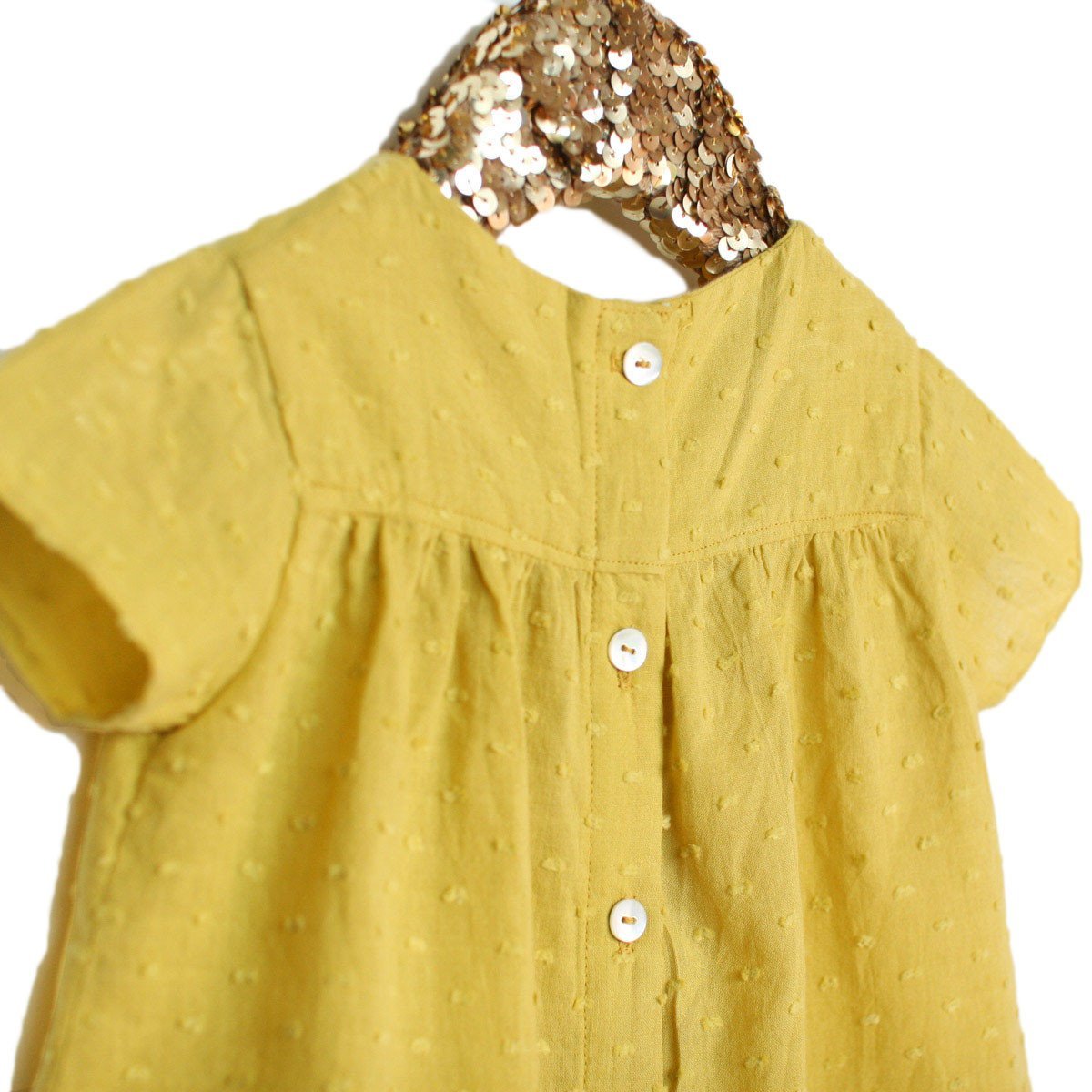 - Blouse : yellow cotton plumetis at ©France Duval Stalla for the short sleeve version