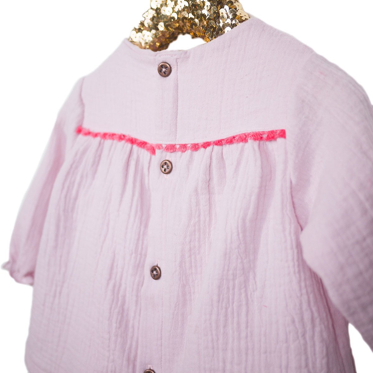 - Blouse : light pink «doucerose» cotton double gauze at ©Camillette Creation for the long sleeve version
