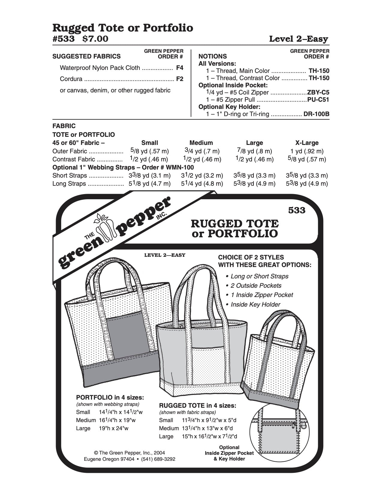 Rugged Tote & Portfolio Pattern - 533 - The Green Pepper Patterns