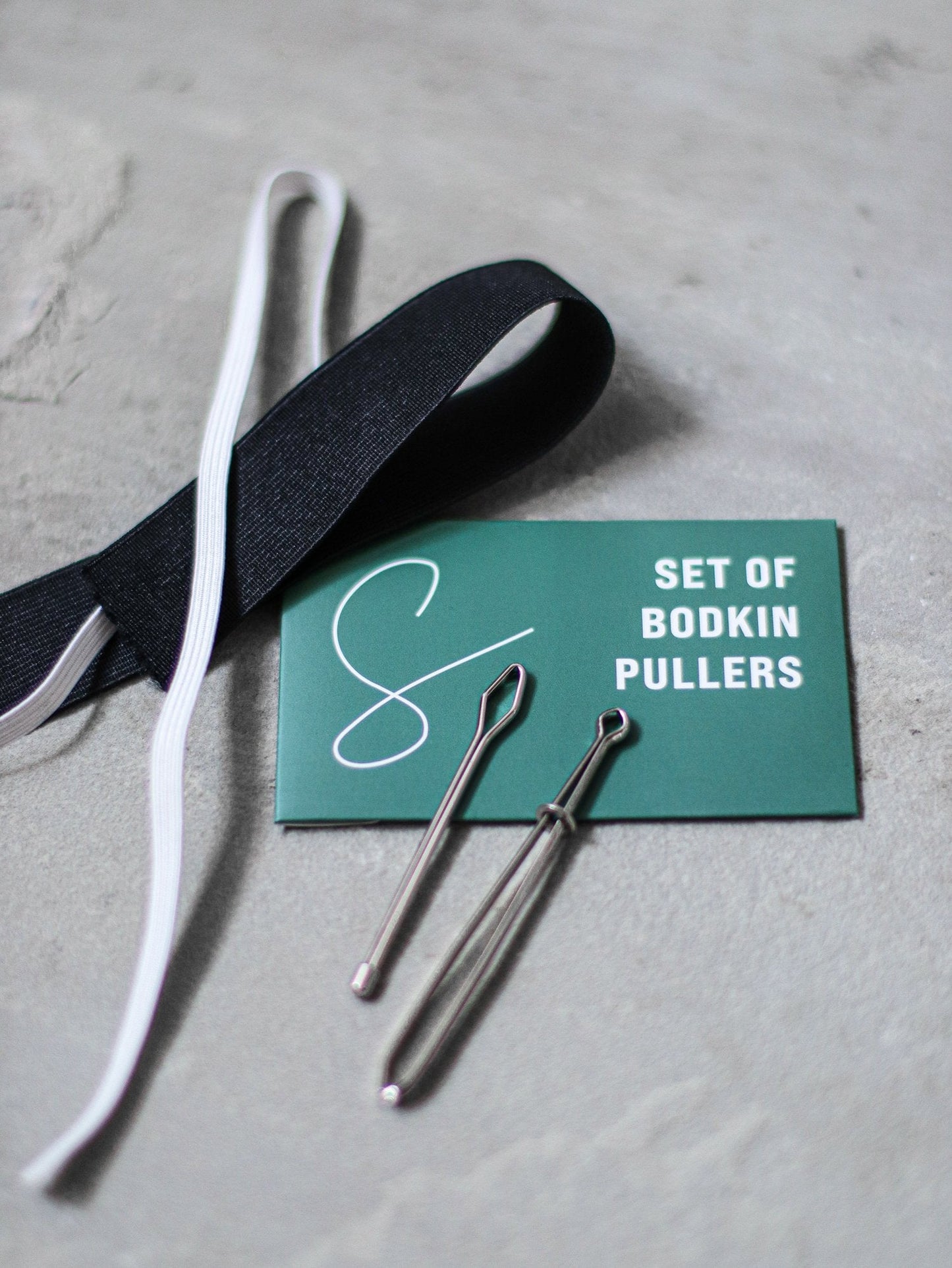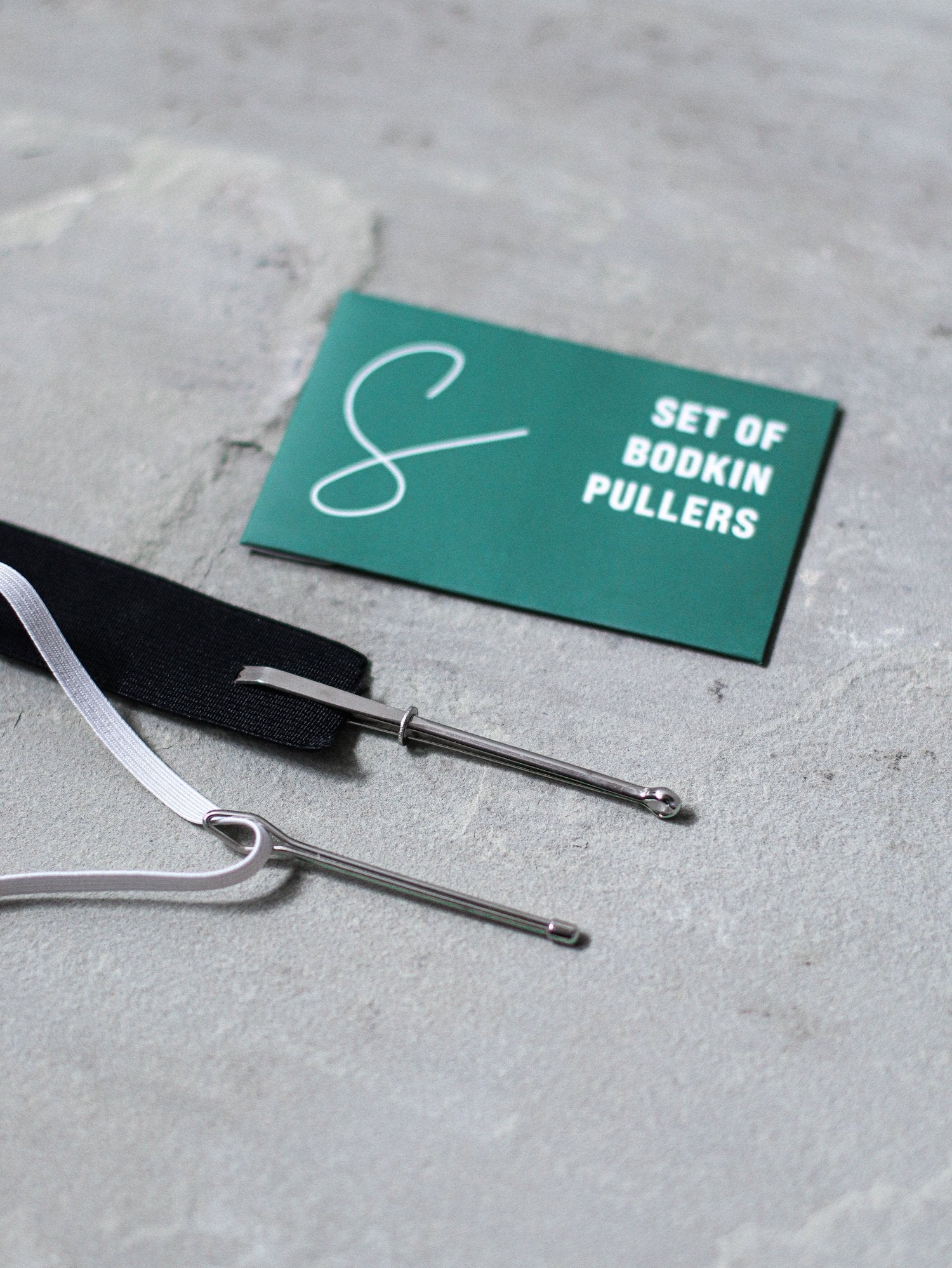 The perfect set of handy bodkin puller needles to easily insert and pull elastic, cord and webbing through castings.