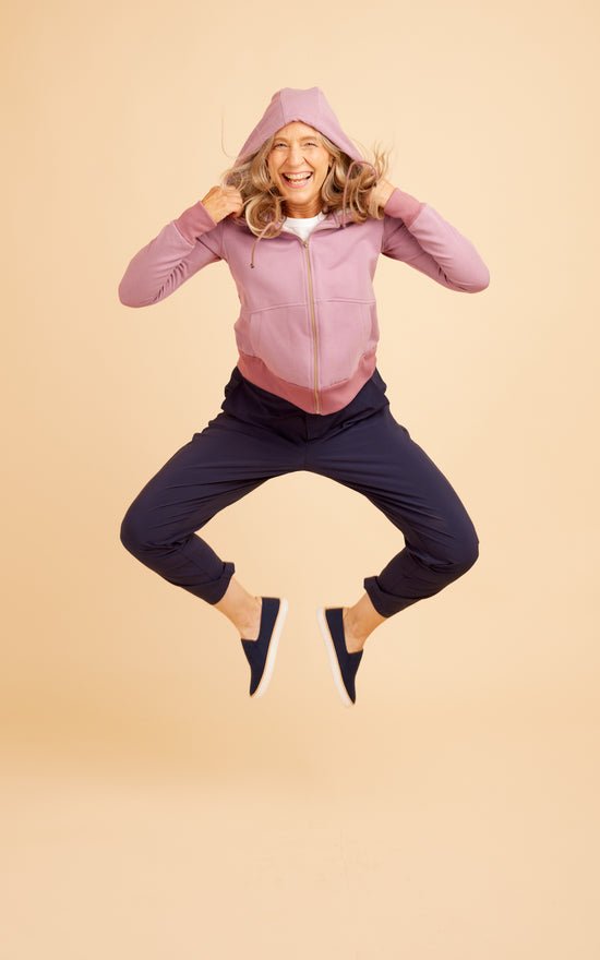 The Stanton features a pullover and a zip-up version, and both have a curved yoke at the shoulder with the great fit of a set-in sleeve. The roomy pockets let you leave your purse at home and run free. Get playful with color-blocking or go monochrome for a chic look. From the yoga studio, to the coffee shop, you'll be looking sharp!