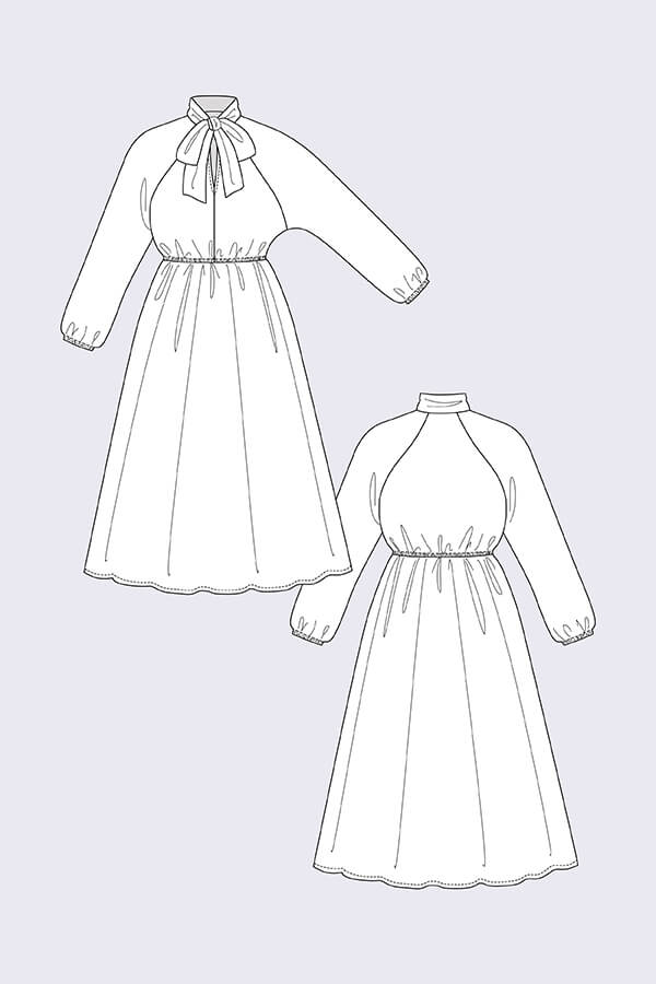 • The pattern includes two variations: a casual blouse and a feminine dress