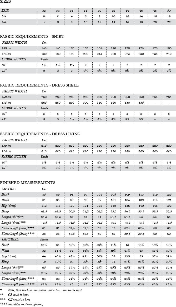 • Lining fabric for the dress: 215 – 220 cm/ 2½ yd