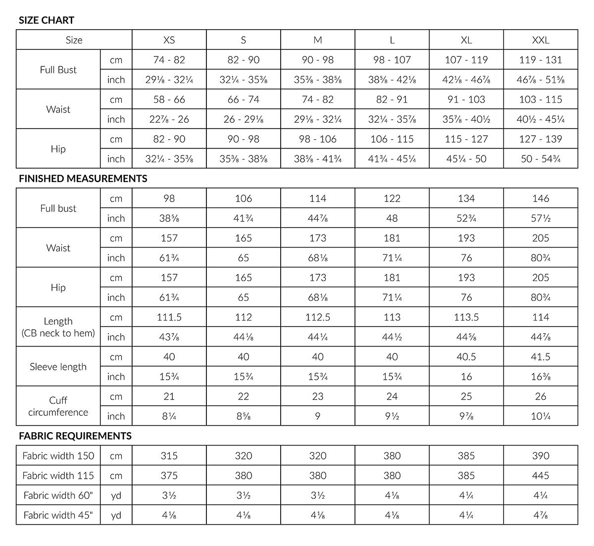The Syli dress and blouse are relaxed everyday garments with a loose fit. Both variations feature a gathered bodice, a shallow tuck across the chest and a hemline that dips slightly longer in back. The neckline is finished with binding with a back vent secured by ties. The calf-length dress has two deep tucks around the hemline of both the skirt and sleeves as well as in-seam side pockets. The ¾-length sleeves of the dress have gathered ends finished with binding and ties. The blouse is hip length and has straight ½-length sleeves with turned hems.