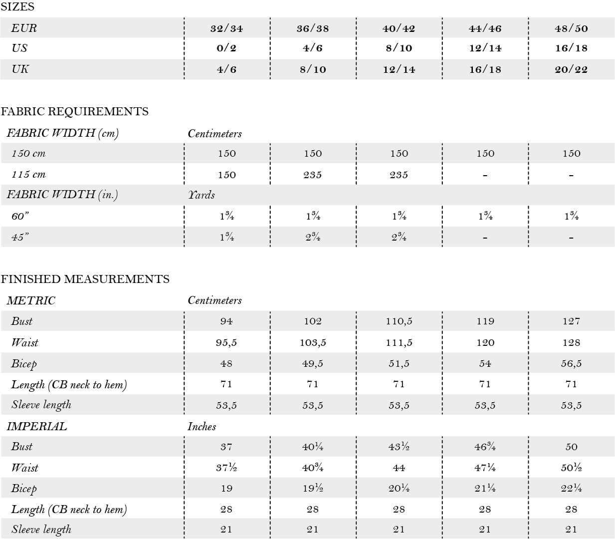Note that for patterned or napped fabrics the fabric requirement may be higher.