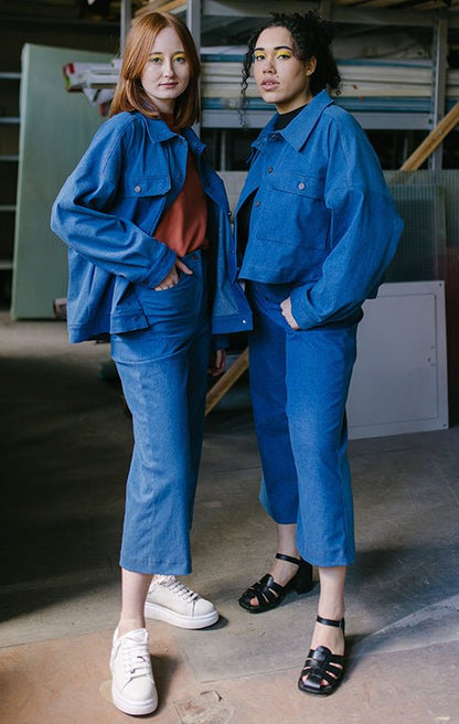 - medium weight denim with some elastane, e.g. organic cotton at a fabric width of at least 140cm (1.5yd): XS: 1.35m (1.5yd) | S-XL: 1.75m (1.9yd) | XXXL: 2m (2.2yd)
