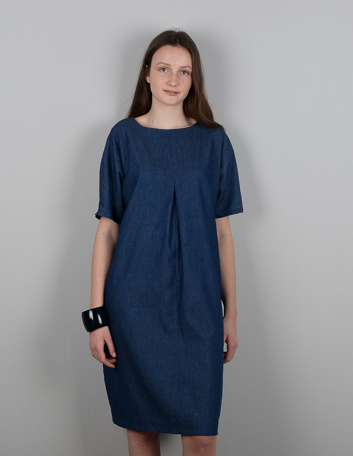 A beautifully understated dress and top, with the sleeves and body cut as one. The inverted pleat at centre front and back, flatters most body shapes.