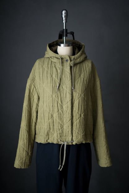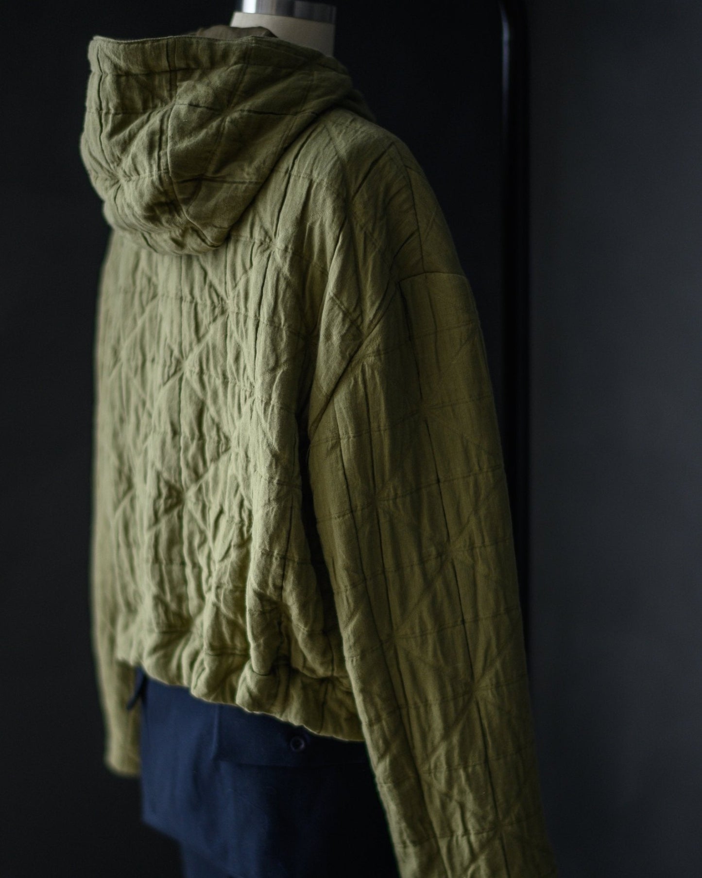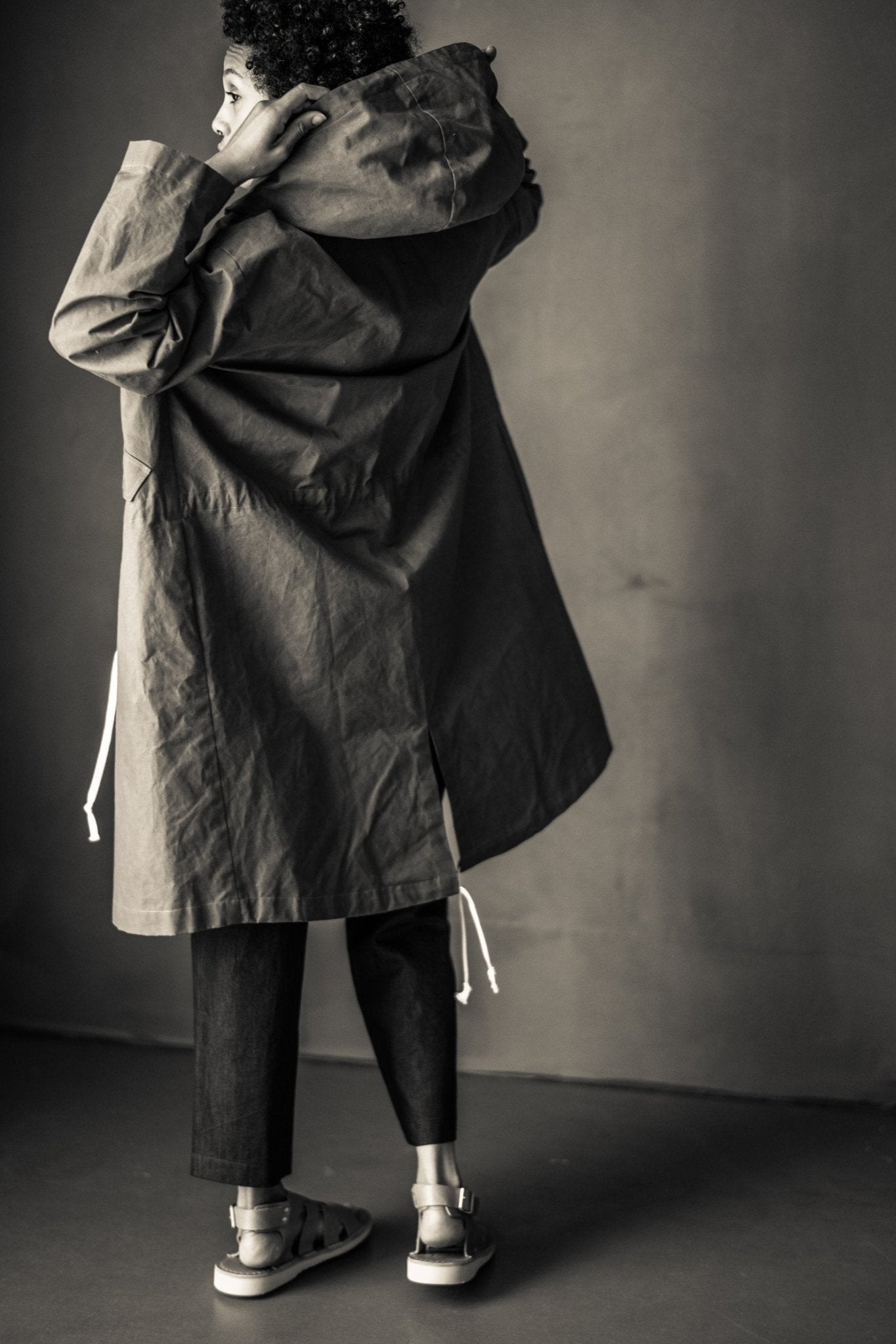 It works well in fabrics as diverse as heavy wool and oilskin. If you want to keep the boxy shape choose something with structure and body, if you use something like linen it will have a softer more slouchy look.