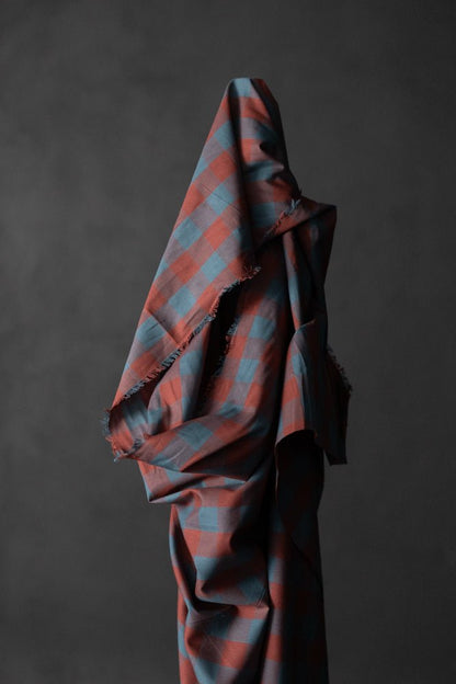 A jewel toned gingham of teal and rust red with a buttery soft texture that would gather beautifully.