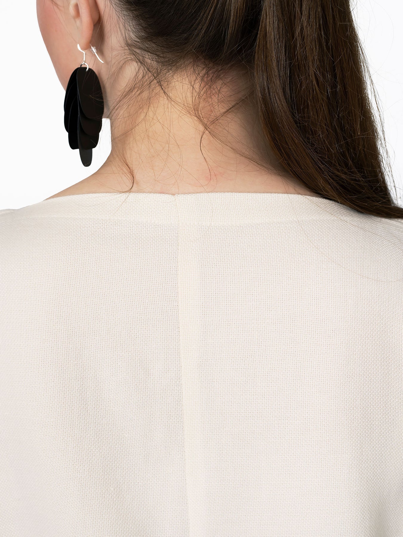 The Wrap top has two unevenly shaped fronts, giving it an asymmetrical V-neck when finished, and the boxy shape means it's flattering on many different body types. Its wide sleeves can either be rolled up or kept at elbow length.