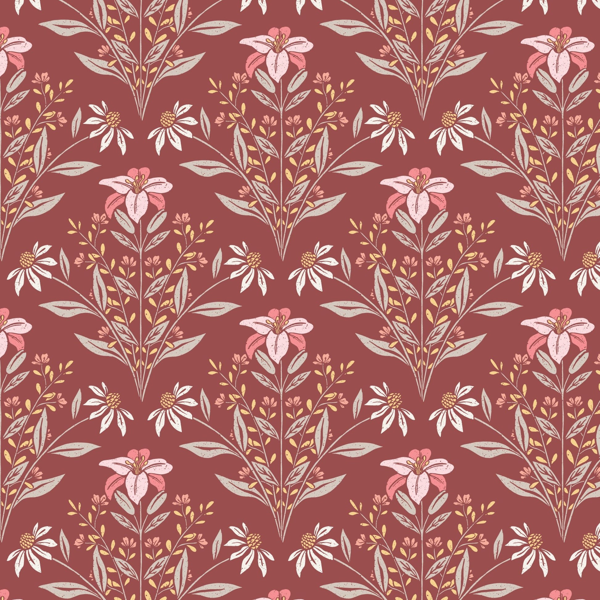 Bouquet - Burgundy - Eventide - Jillian Anderson - Cloud 9 Fabrics - Poplin