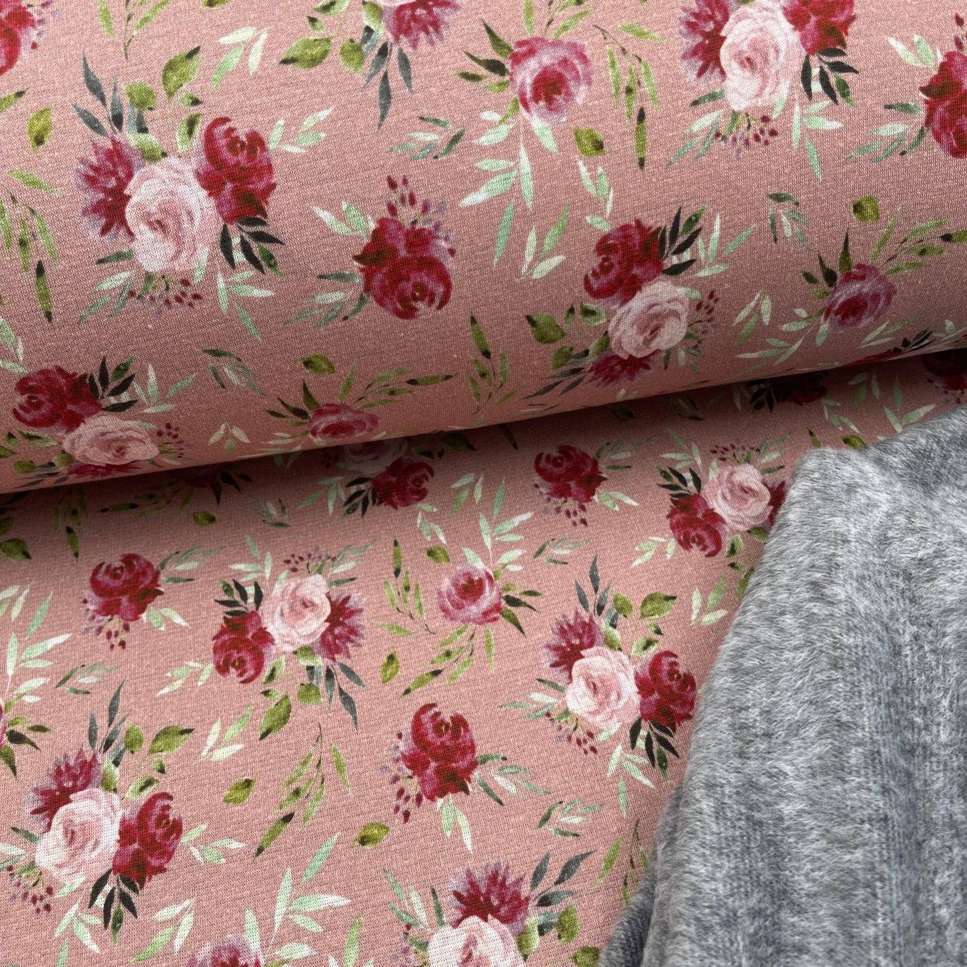 European Cotton Stretch Alpensweat - Romantic Roses - Oeko - Tex® - Old Rose - Simplifi Fabric