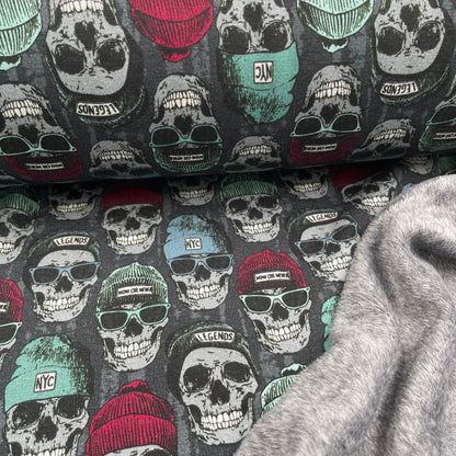 European Cotton Stretch Alpensweat - Skulls - Oeko-Tex® - Grey