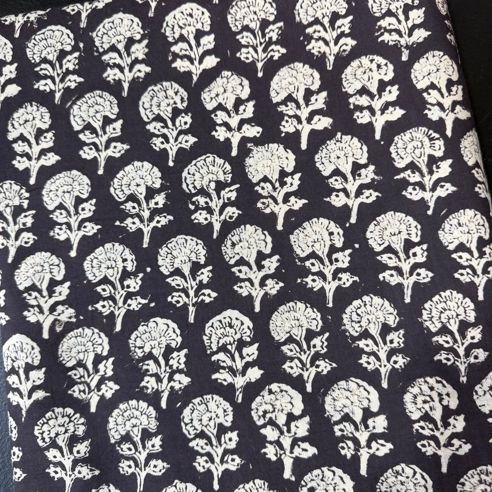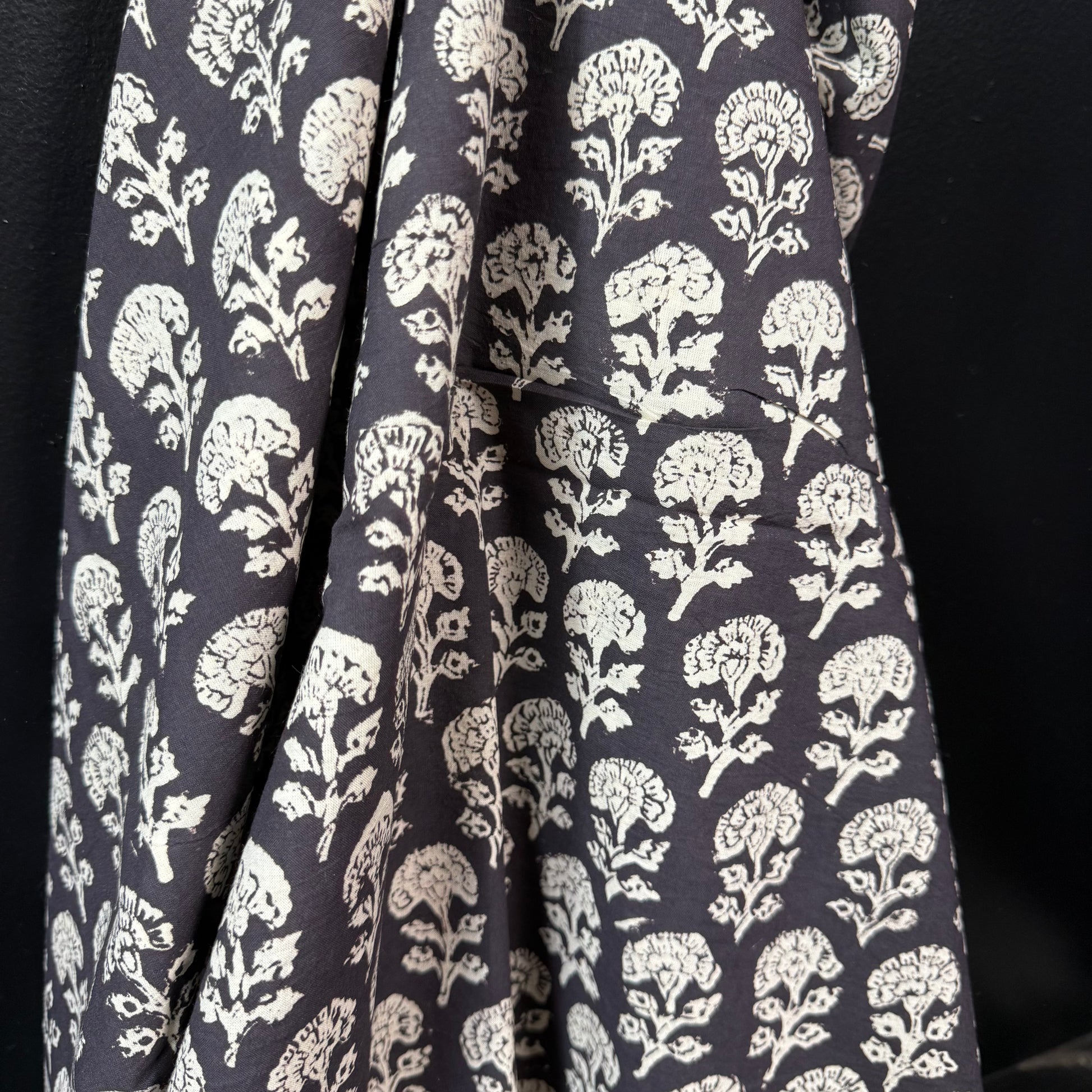 Harvest Bloom Black - Bagru Indian Cotton Block Print