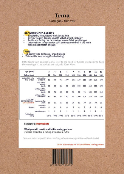 Irma Cardigan or Thin Vest Sewing Pattern- Girl 3/12Y - IkateeIKATEE-Irma-3/12