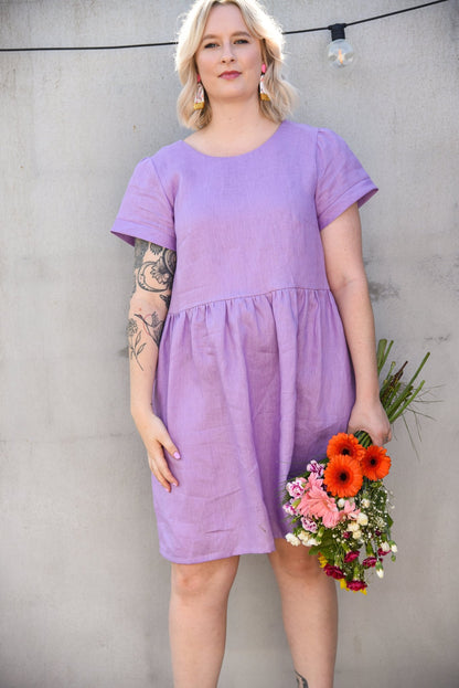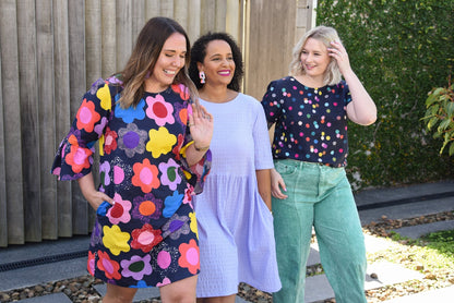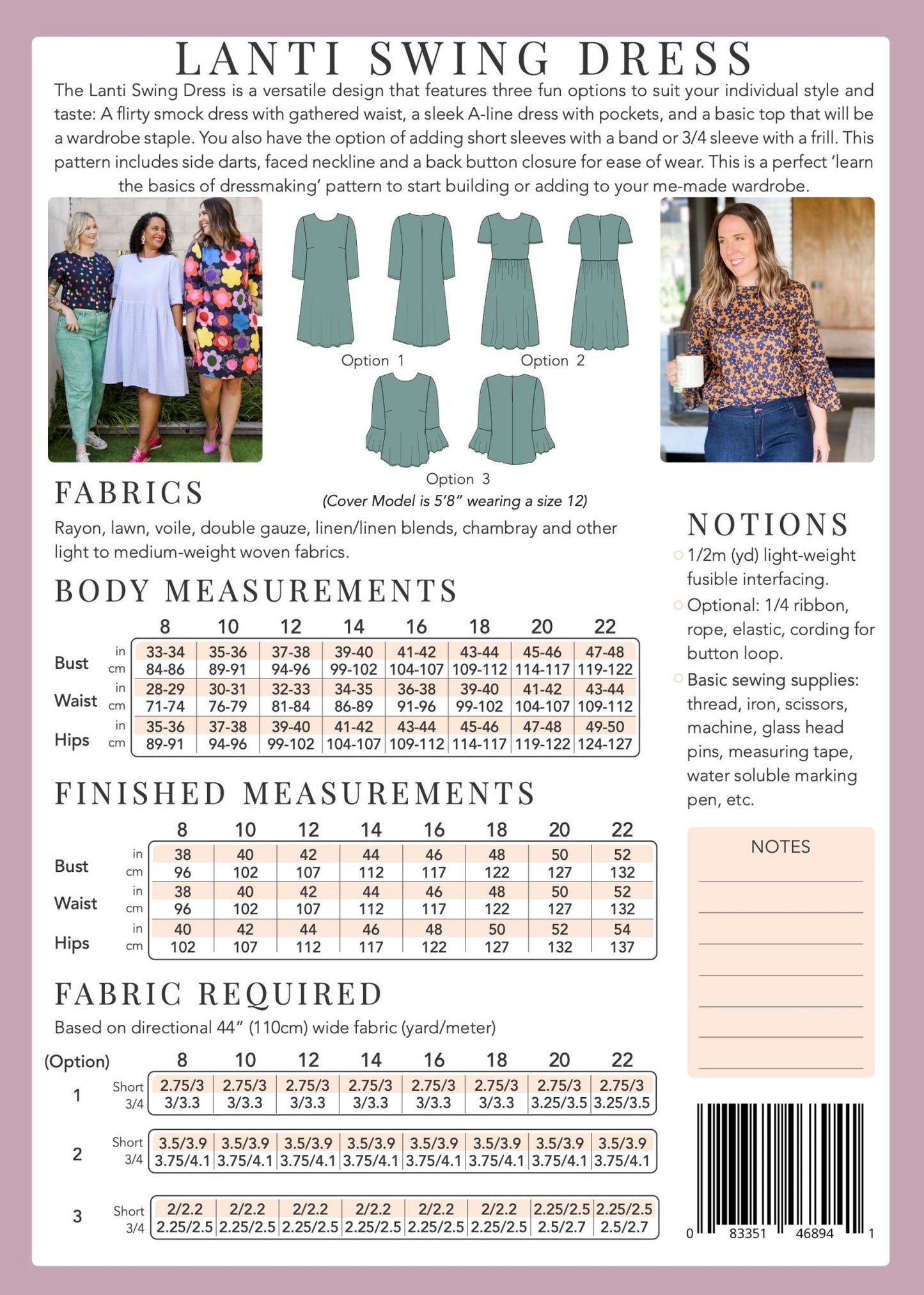 The Lanti Swing Dress is a versatile design that features three fun options to suit your individual style and taste: A flirty smock dress with gathered waist, a sleek A-line dress with pockets, and a basic top that will be a wardrobe staple. You also have the option of adding short sleeves with a band or 3/4 sleeve with a frill. This pattern includes side darts, faced neckline and a back button closure for ease of wear. This is a perfect learn the basics of dressmaking' pattern to start building or adding to your me-made wardrobe.